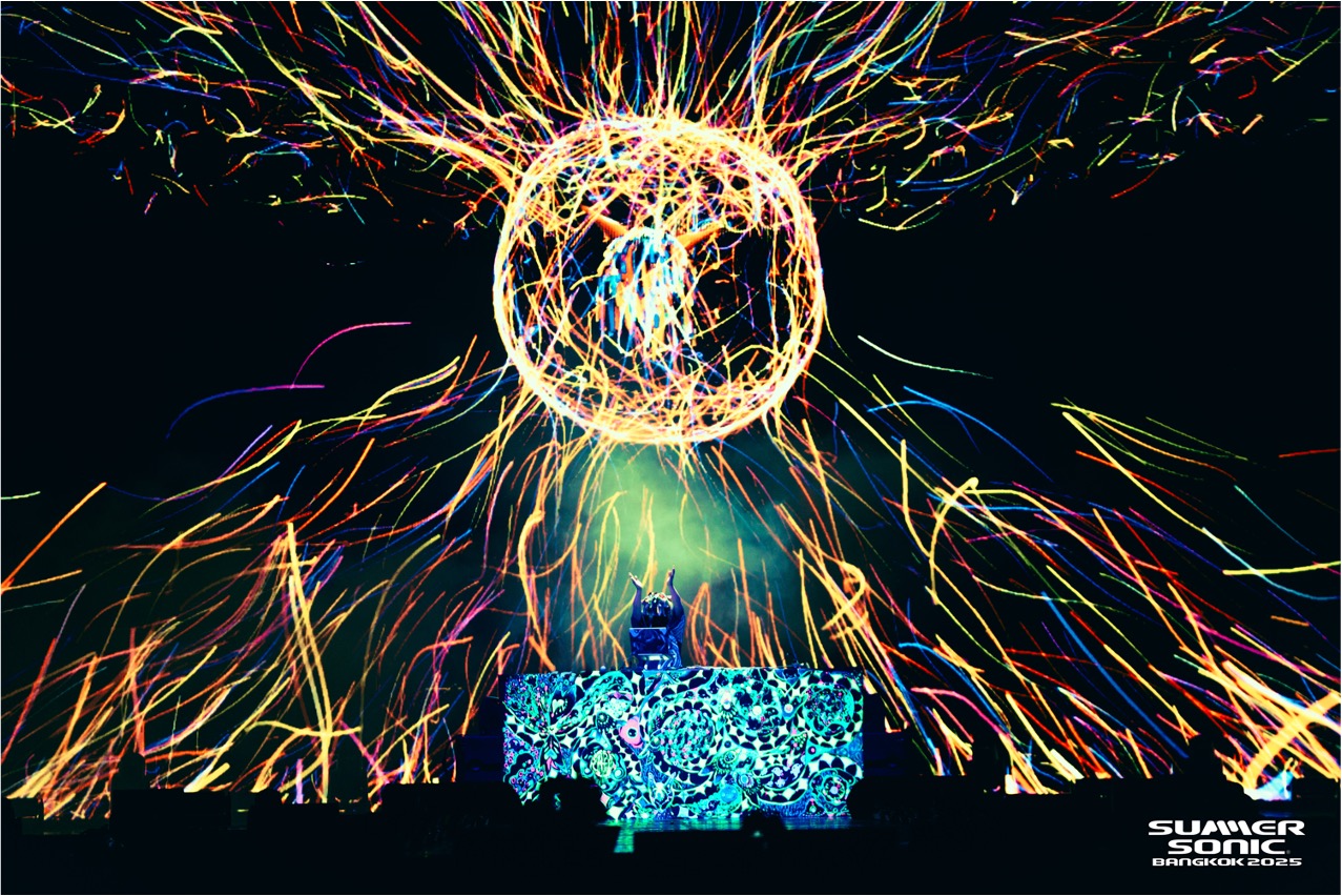 重低音が床を震わせ、オーディエンスが一斉にジャンプする光景は圧巻だった。さらに「Pump It」では観客のシンガロングが巻き起こり、会場の空気はさらに高まる。愛を願う名曲の際には常に合唱が起こり、国籍も世代も超えた観客の声が、まるで祈りのように響き渡った。音楽が社会や世界を繋ぐ原点に立ち返る瞬間であり、バンコクの夜は愛と平和を求めるメッセージで包み込まれた。こうしてDAY 1は、爆発的なエネルギーと祝祭の歓喜に彩られながら幕を閉じた。