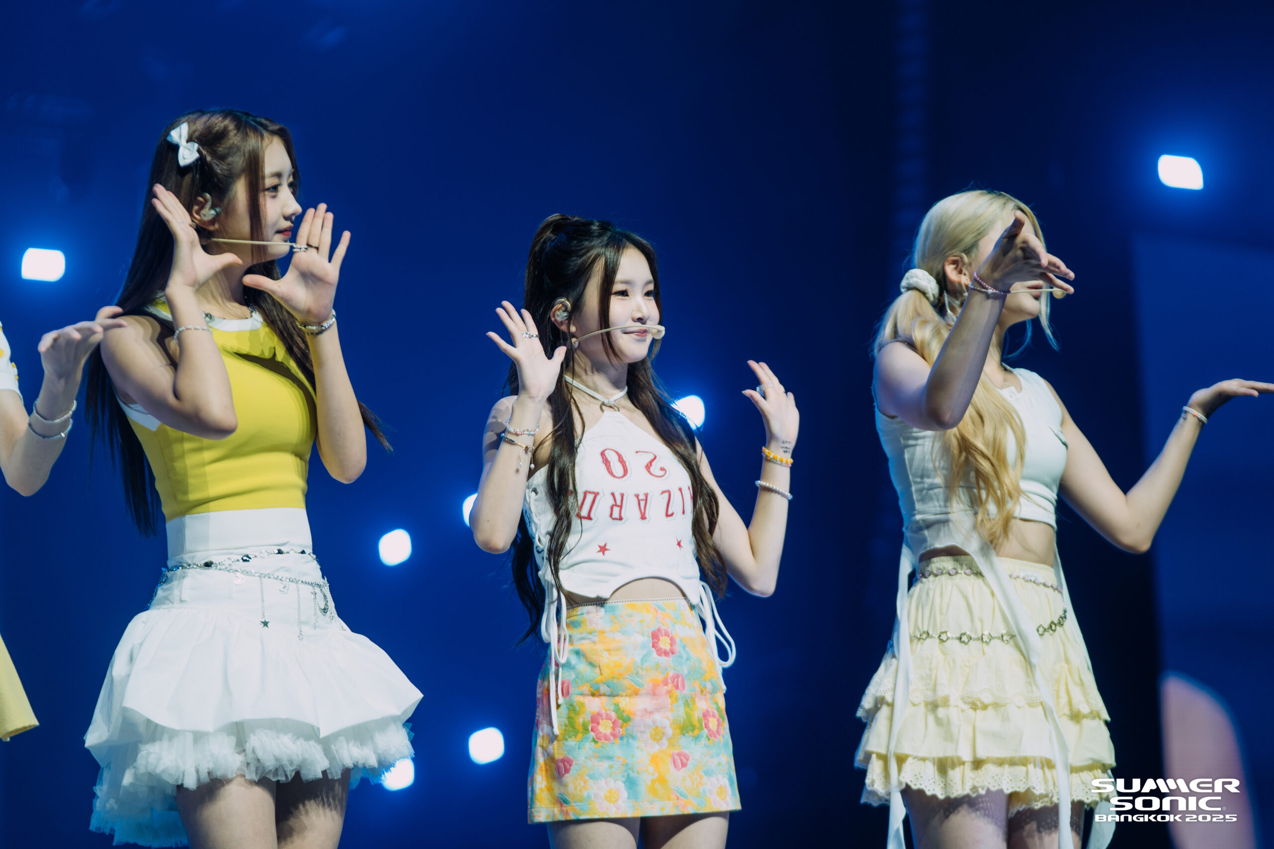 12人組の大編成ならではの圧倒的な存在感で、ステージに登場した瞬間から会場の視線を独占した。多彩なヴォーカルが重なり合い、群舞のようなダンスが繰り広げられると、ステージはまるで色とりどりの万華鏡のように輝きを放つ。序盤ながらも観客は総立ちで声援を送り、祝祭感は一気に加速していった。