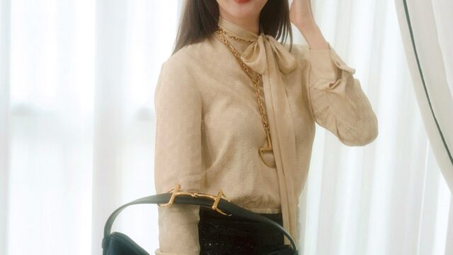 さらにホワイトヒールとLVのバッグを組み合わせ、フェミニンでありながらモード感も漂うスタイルを完成させました。柔らかなウェーブヘアに花のようなアクセサリーをあしらい、春の訪れを告げるような軽やかさと華やかさで登場。