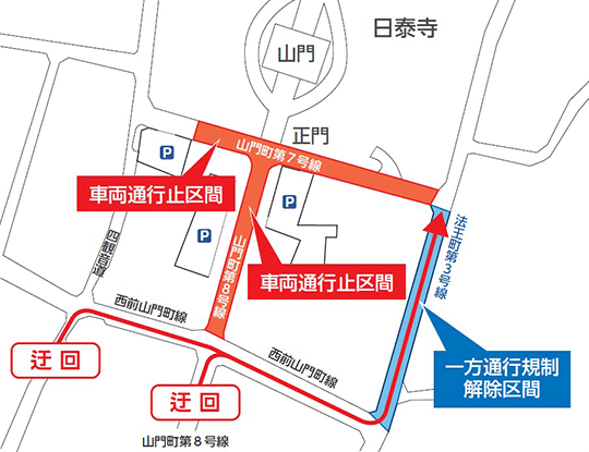 イベント当日は周辺道路で一部交通規制が実施されます。