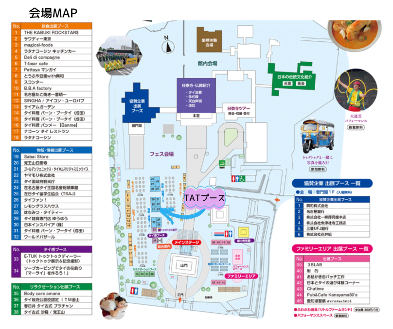 後援:愛知県/名古屋市/在東京タイ王国大使館/在名古屋タイ王国名誉総領事館/タイ国政府観光庁大阪事務所 ほか