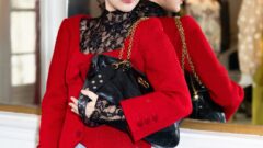 淡いピンクのアイメイクとナチュラルなスタイリングで見せる大人の魅力と、ウィンクや唇をすぼめたお茶目な表情のギャップに、ファンからは