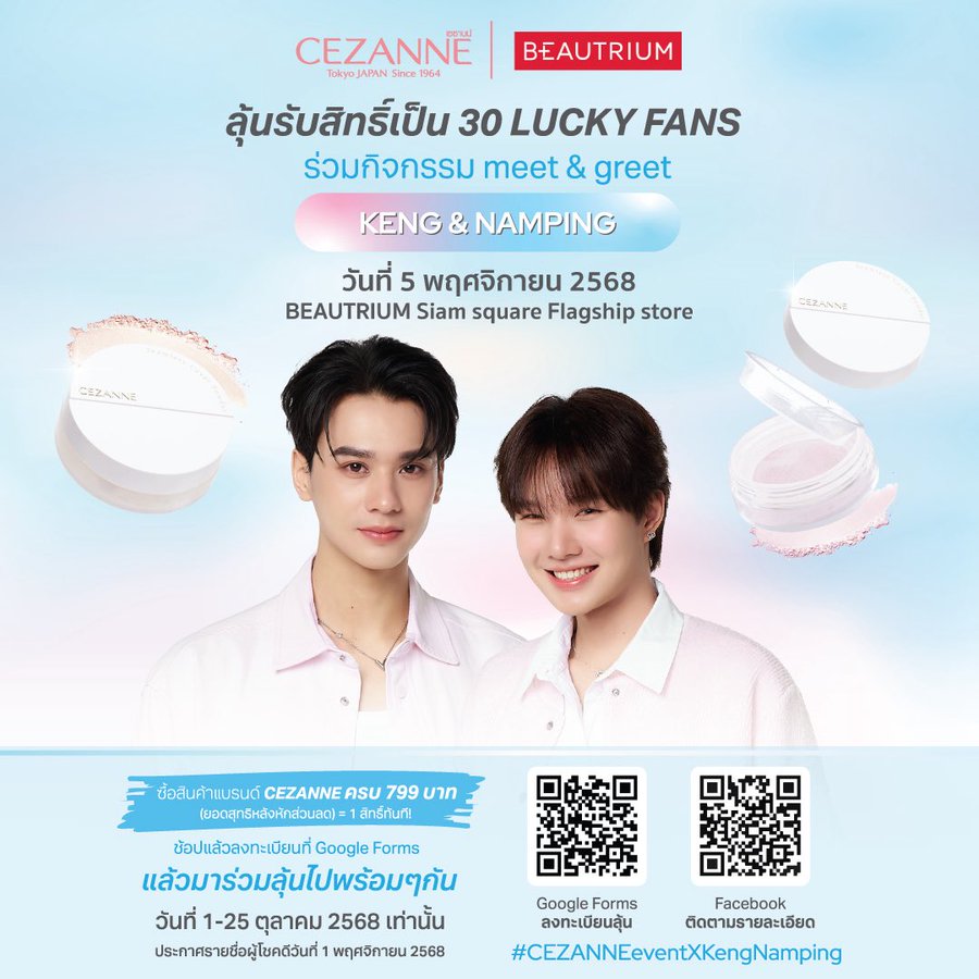 日本の老舗コスメブランド「CEZANNE(セザンヌ)」がタイの大人気ペアKeng(ケン・ハリット)とNamping(ナンピン・ナパッサコーン)をブランドプレゼンターに起用しました!
