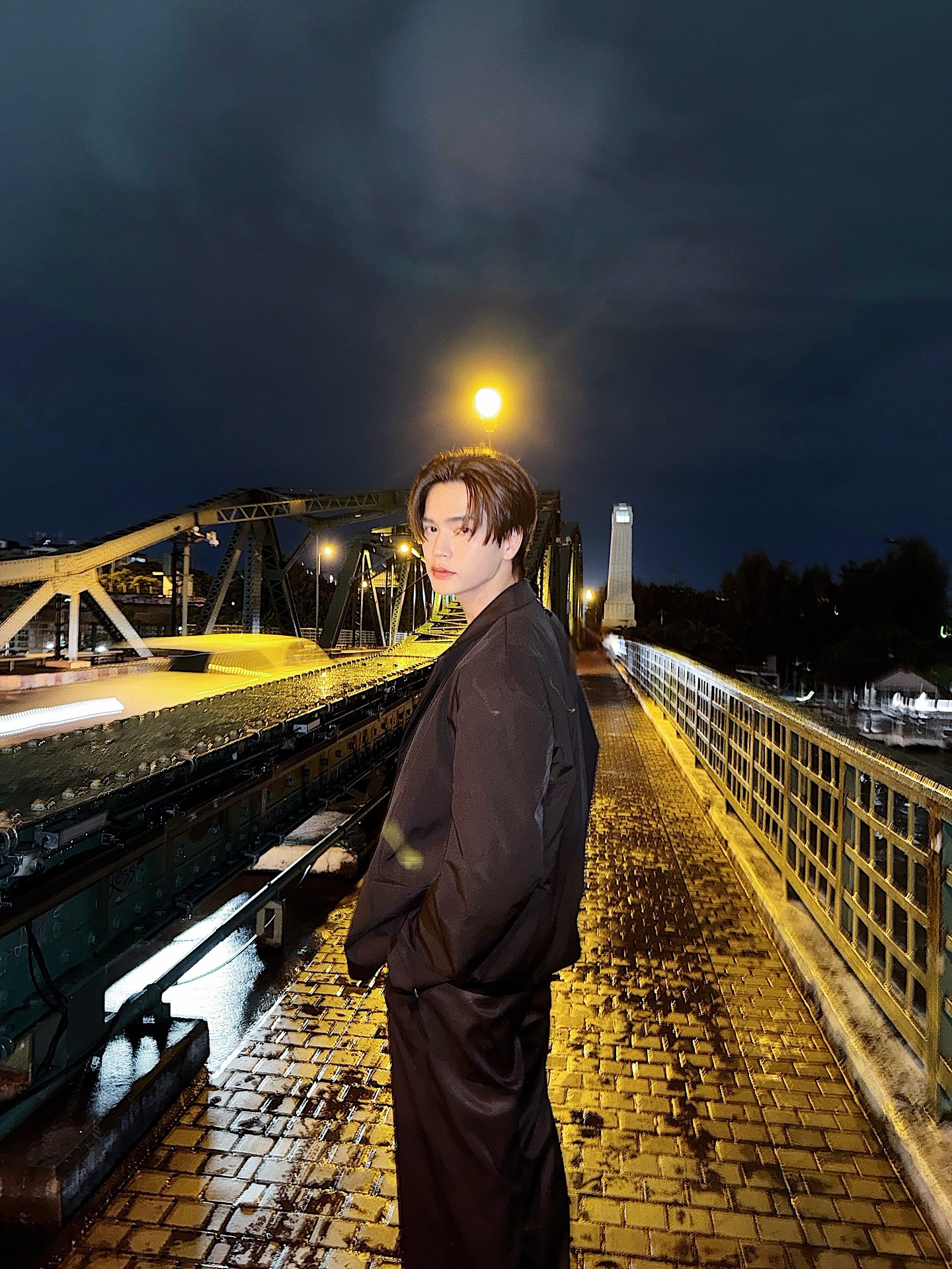 写真は、ライトアップされた橋の上で撮影されたもので、