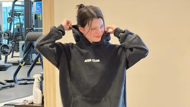 投稿では、ブラックのセットアップに繊細なジュエリーが輝くスタイルを披露。