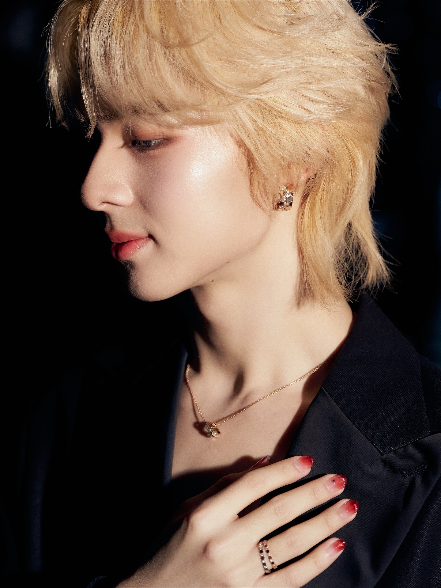 Chaumetの上品なデザインが、NuNewの穏やかな表情と重なり、シンプルでありながらも存在感のあるスタイリングを完成させています。