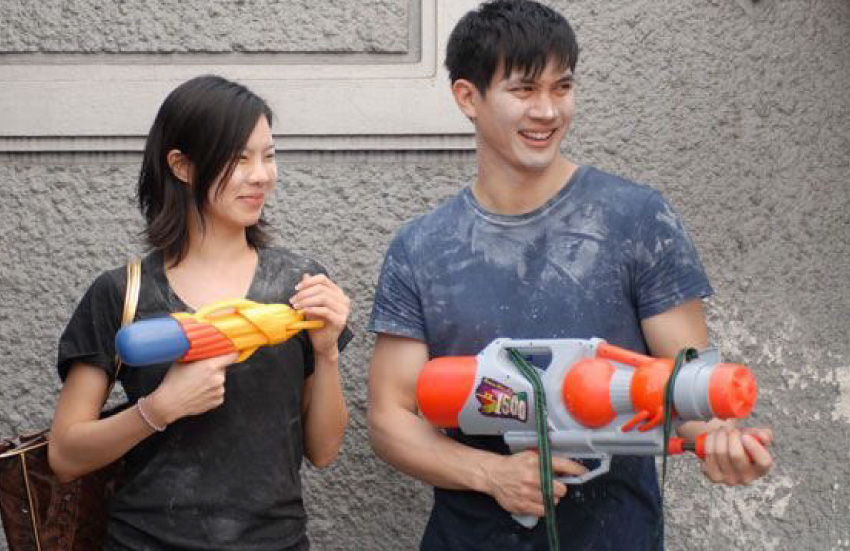 ルン役:Ken Teeradej(ケン・ティラデート)当時タイでも屈指の人気俳優で、爽やかで優しい雰囲気の“理想の年上男性”として圧倒的な支持を集めました。特にファンの間で語り継がれるのが、劇中のソンクラーンのシーン。ソンクラーンとは、タイの旧正月を祝う“水かけ祭り”で、人々が水をかけ合い、顔にパウダー(白い粉)を塗り合う伝統行事です。そこでケンが“ルン”として水や粉まみれになりながらも圧倒的にかっこよく登場し、「หล่อทะลุแป้ง(パウダー越しでもイケメン)」という名フレーズが誕生しました。