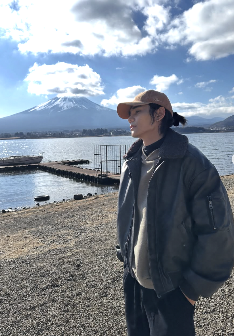 公開された写真は、電車内でリラックスした表情を見せる姿や、湖畔から富士山を望む静かなロケーションでの一枚など、旅の途中を切り取ったような内容。レザージャケットやキャップを合わせたシンプルな装いは、肩の力が抜けた雰囲気ながらも、ジェフらしい洗練を感じさせます。