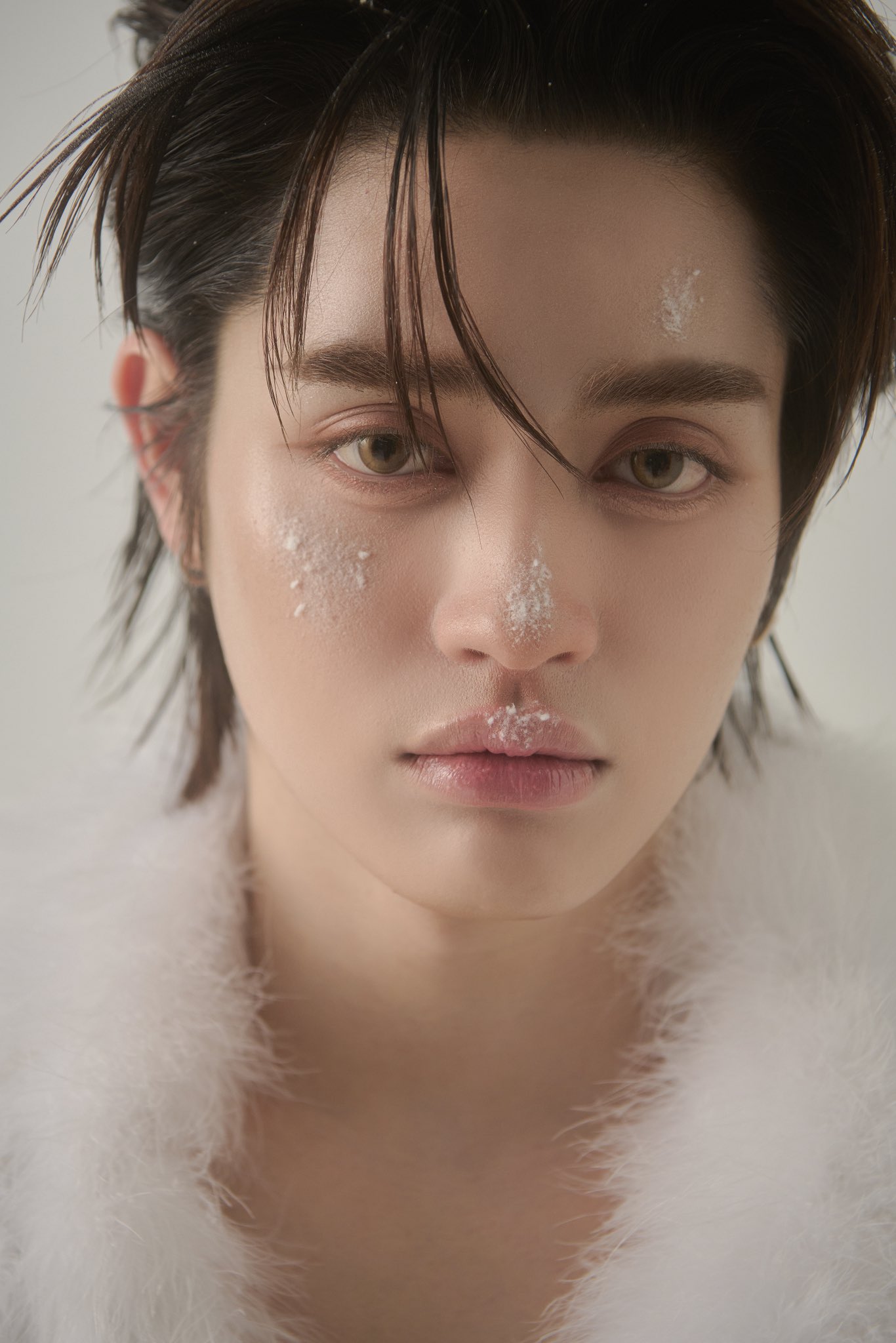 今回の投稿でNiceは、白いファーをまとい、角のようなヘッドアクセサリーをつけた“白いトナカイコスチューム”姿で登場。柔らかな白背景の中で静かな表情を見せ、幻想的な冬のムードを完成させています。