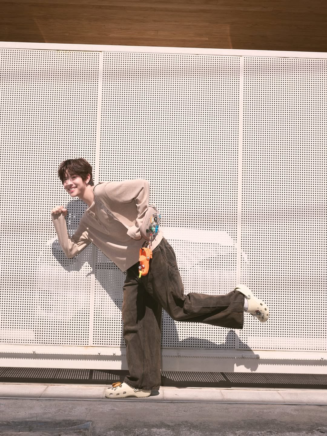 一方、ファーストワンは「Crocs : 100000/10」と高評価を添えて投稿。壁際や屋外でのショットでは、ナチュラルな表情と軽やかな着こなしが際立ち、Crocsアイテムの楽しさを存分に表現しています。