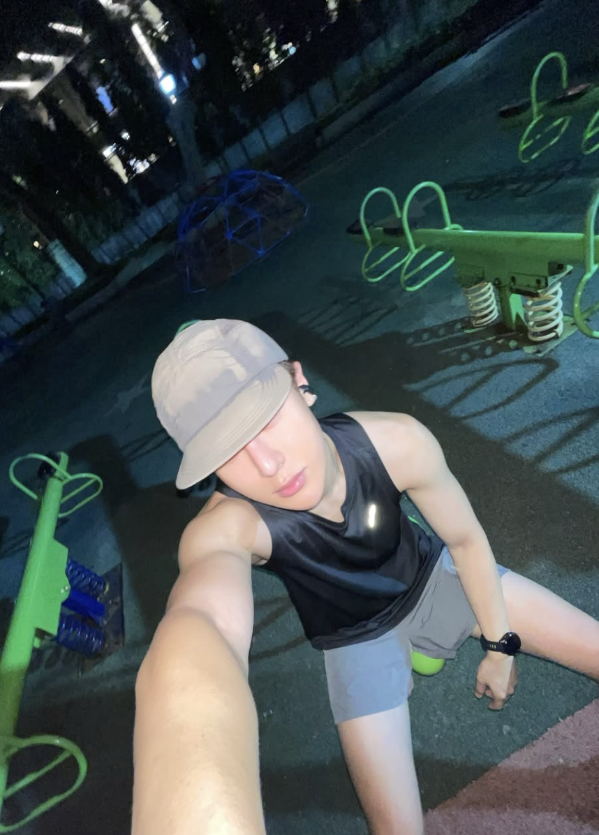 写真では、キャップにノースリーブ姿で引き締まった腕や肩のラインを際立たせたカットや、ジムでのモノクロセルフィー、屋外の運動器具で撮影したアクティブな一枚などが並び、ストイックさと自然体の魅力が同時に伝わる内容に。