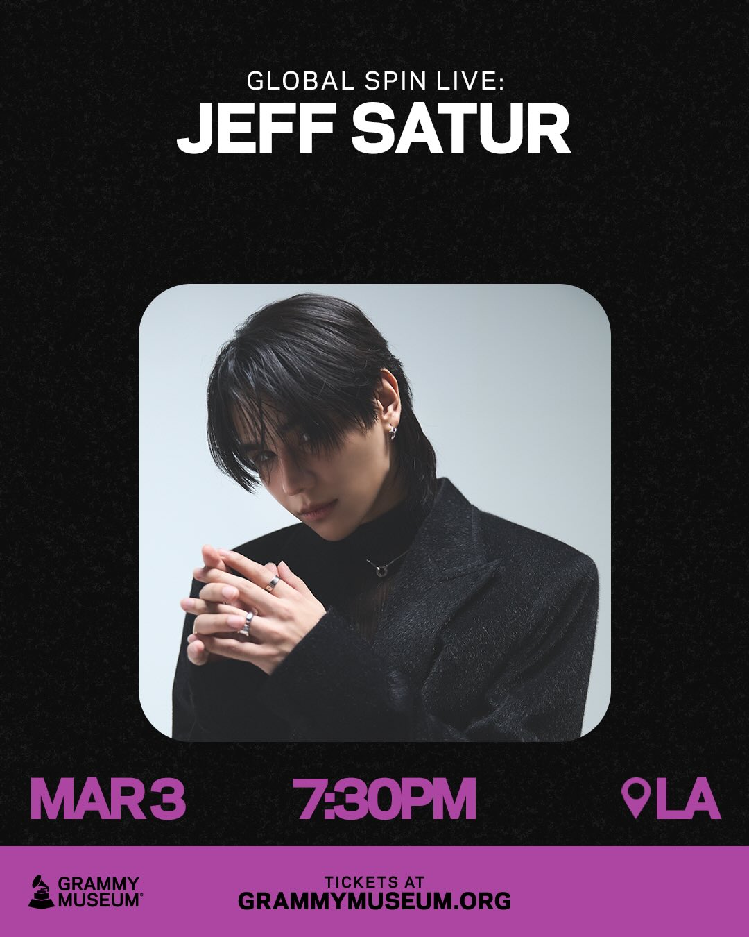 アメリカ・ロサンゼルスに拠点を置くGRAMMY MUSEUMは、公式ライブプログラム「Global Spin Live」にJeff Satur(ジェフ・サター)が出演することを発表しました。公演は3月3日19:30(現地時間)、ロサンゼルスにて開催予定です。チケットはGRAMMY MUSEUM公式サイトのリンク linkin.bio/grammymuseum より購入可能です。