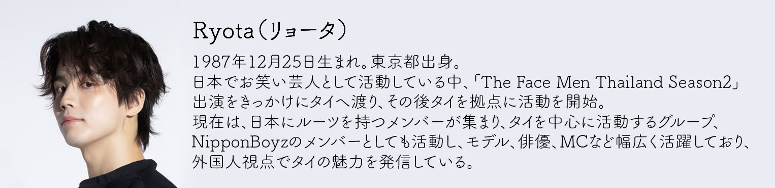 初めまして、NipponBoyzのRyota(リョータ)です。タイに住み、タレント活動をして早8年。