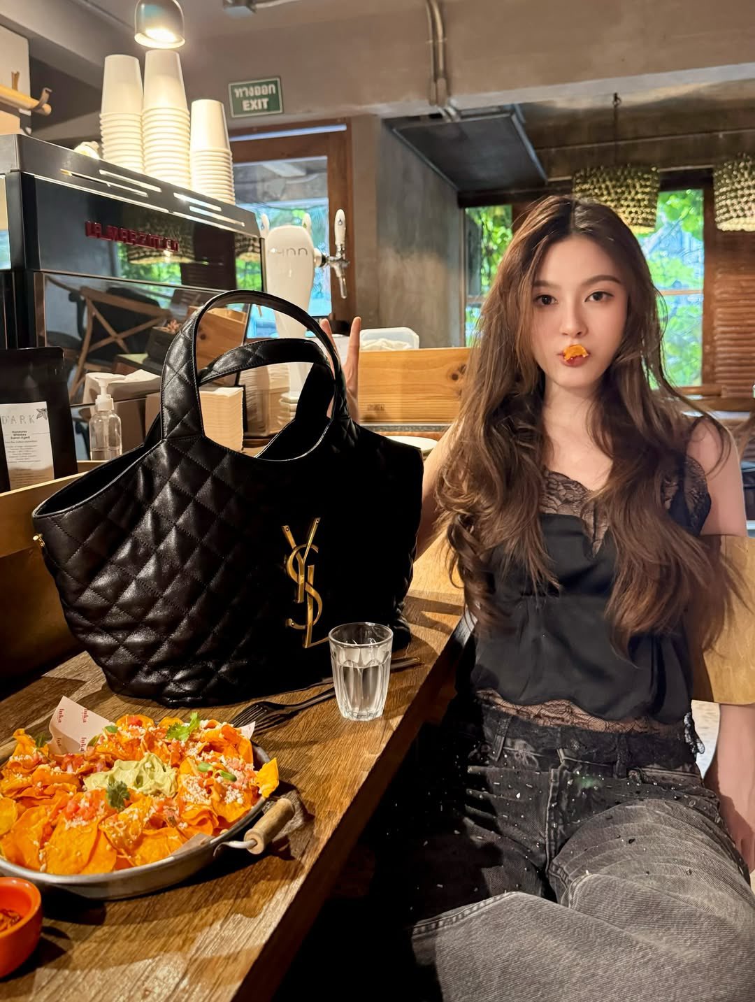 人気女優Prim(プリム)の最新私服が美しすぎる!YSLの巨大バッグ×ナチョスを頬張るお茶目なカットも可愛いと話題に【タイ女優】