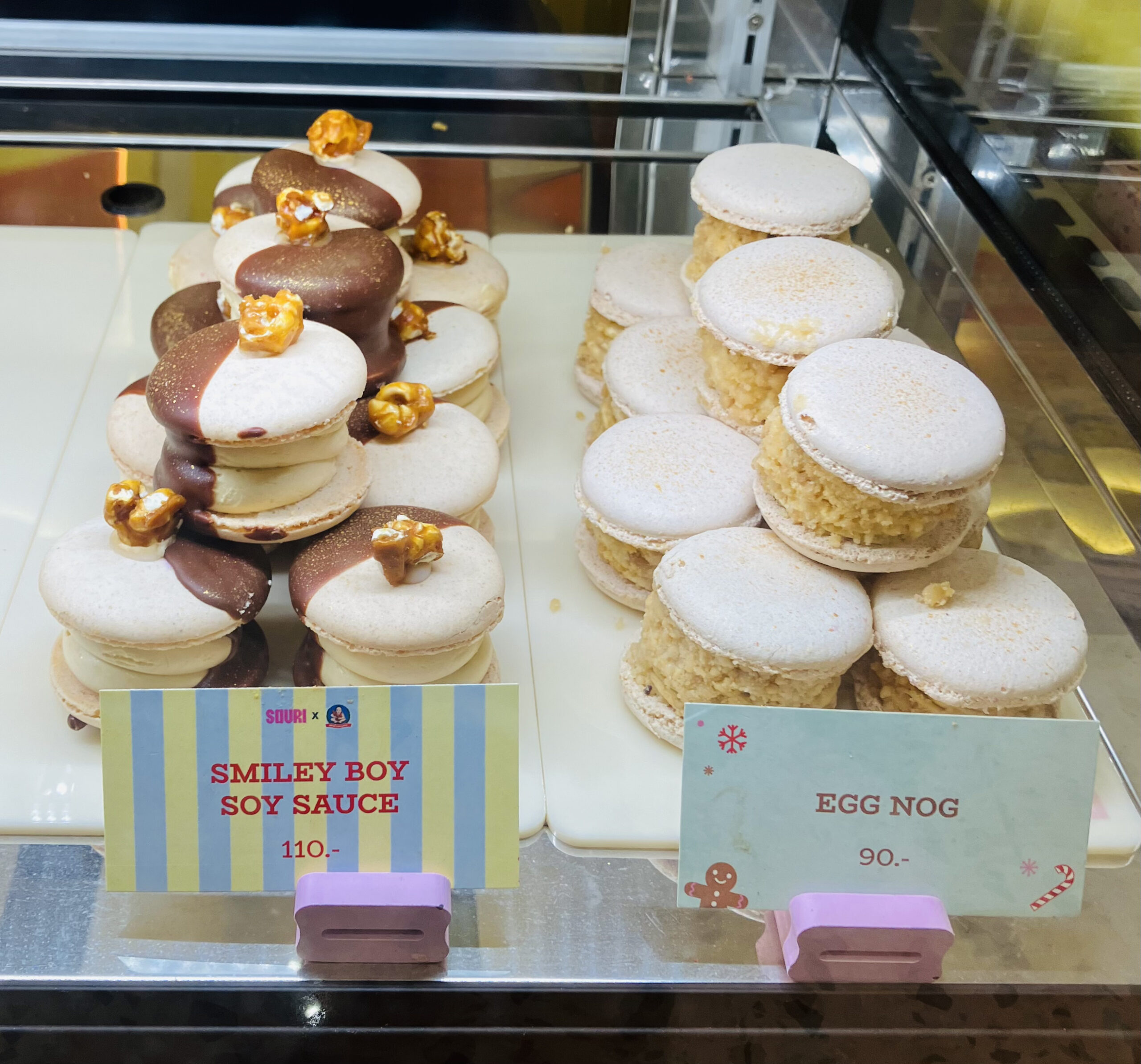 筆者はFatcaronを13種類購入。そのうち12種類がタイの味で、もう1つは誤って購入した「Egg Nog」でした。英語名を見て「ไข่นก/カイノック(うずらの卵)」と勘違いしてしまった。