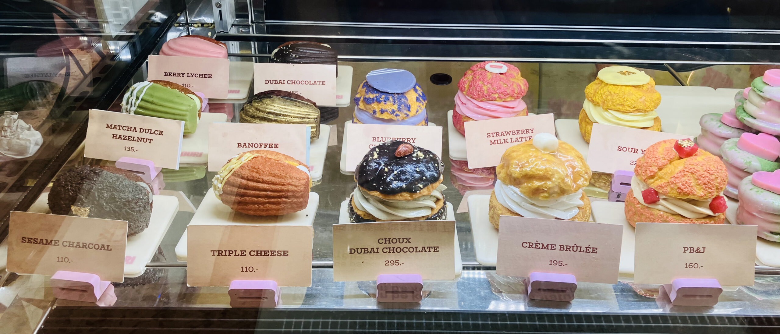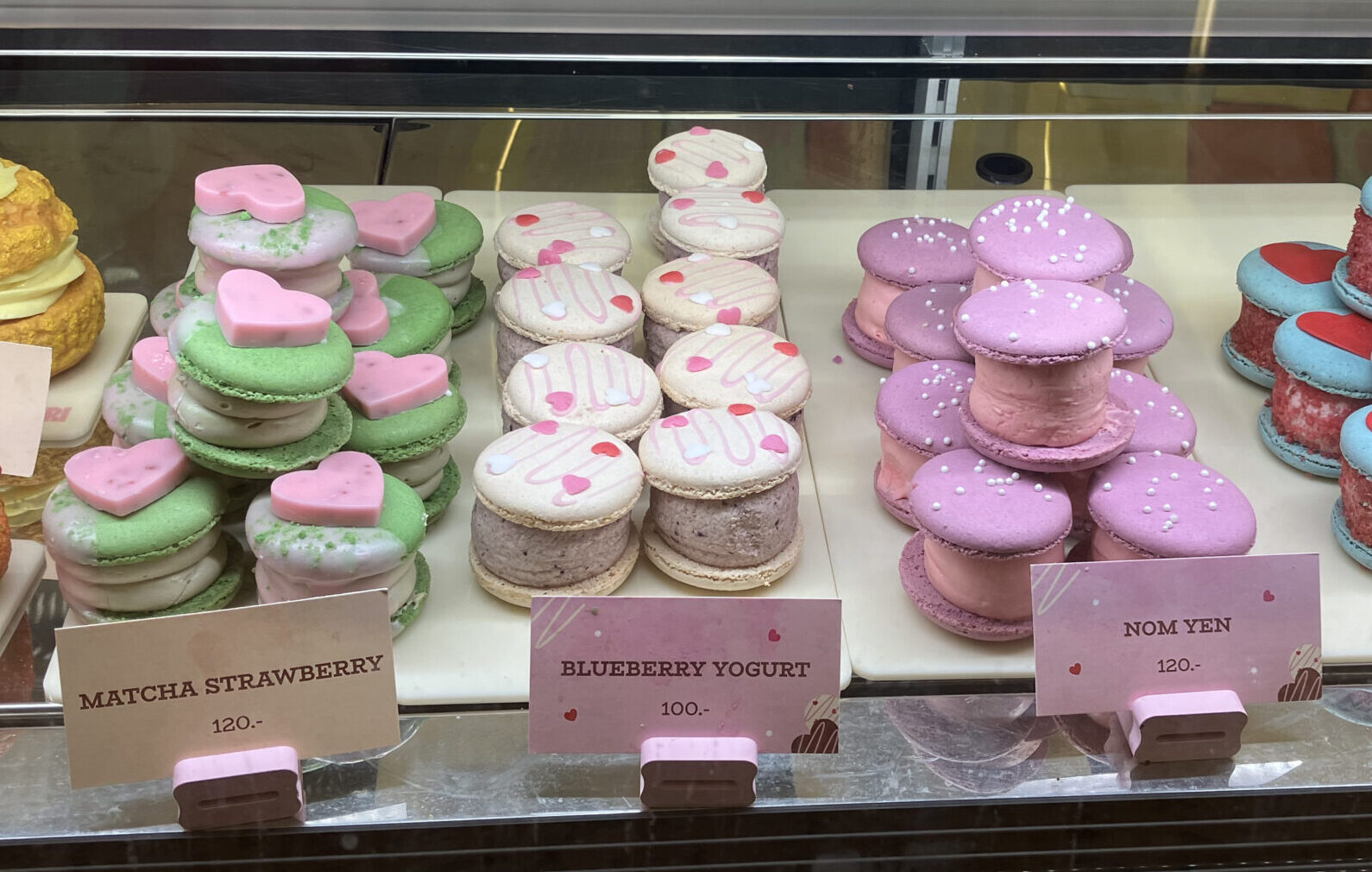 この日、バンタットン店ではFatcaronが18種類、さらにシュークリームとフィナンシェがそれぞれ6種類ずつ販売されていました。