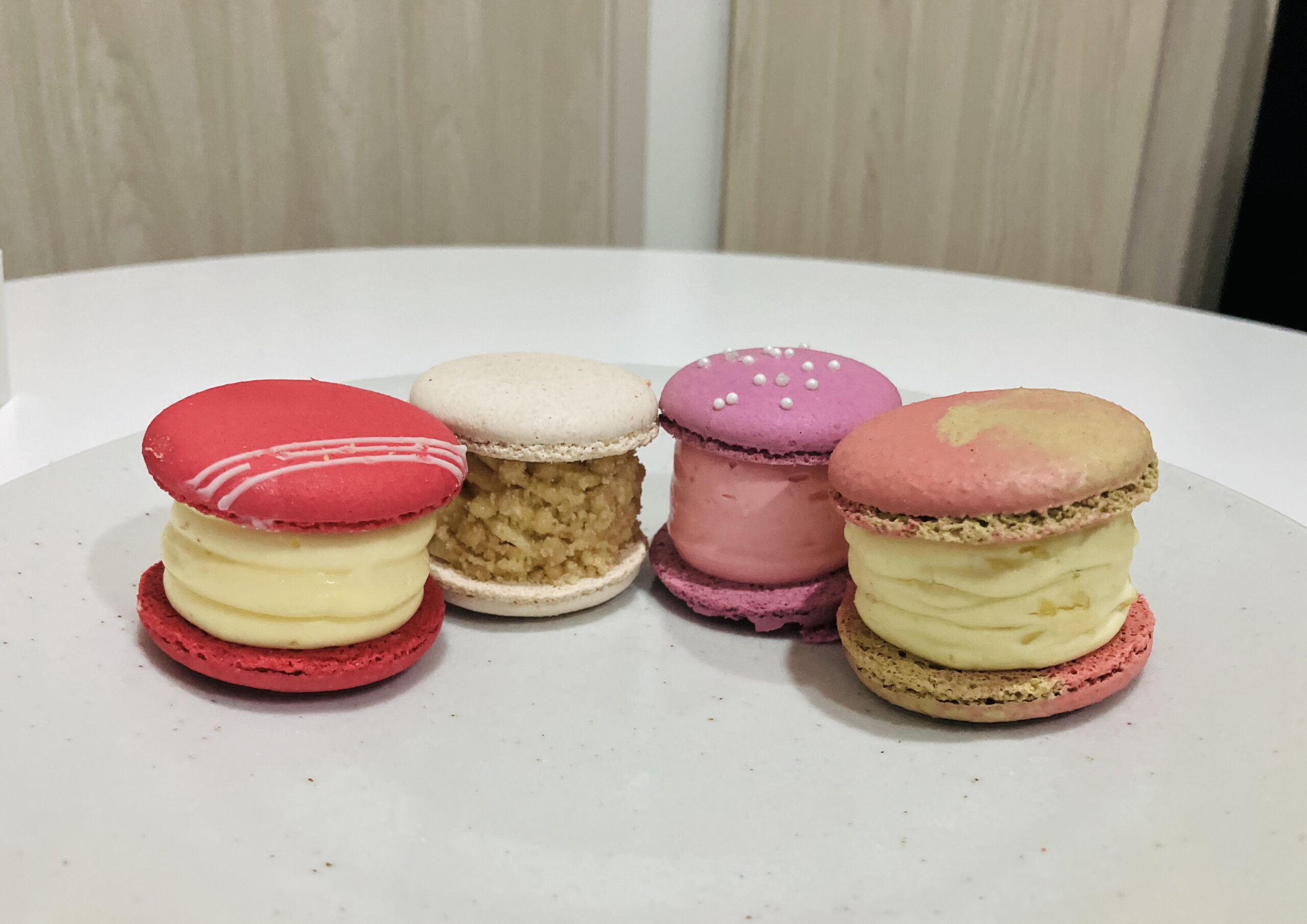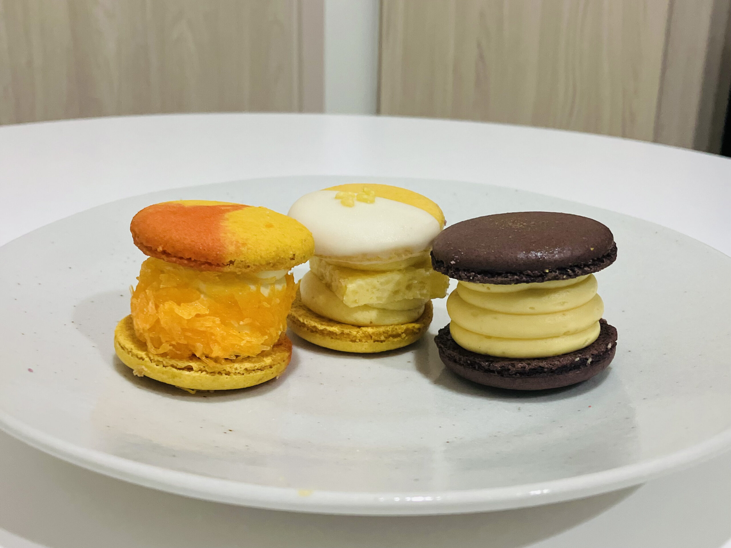 このFatcaronは、クリームの部分がやや塩味寄りで、少し料理のような香りも感じられました。さらに、軽くピリッとする辛さもあり、ほんのり刺激がある程度の辛さです。中には何かのフィリングが入っていて、海老なのか、あるいは海老をイメージして作られたものなのかは分かりませんでした。もし事前に言われなければ、トムヤムクンの味だとは気づかないかもしれませんが、全体としてはおいしくて、とてもクリエイティブなフレーバーだと感じました。