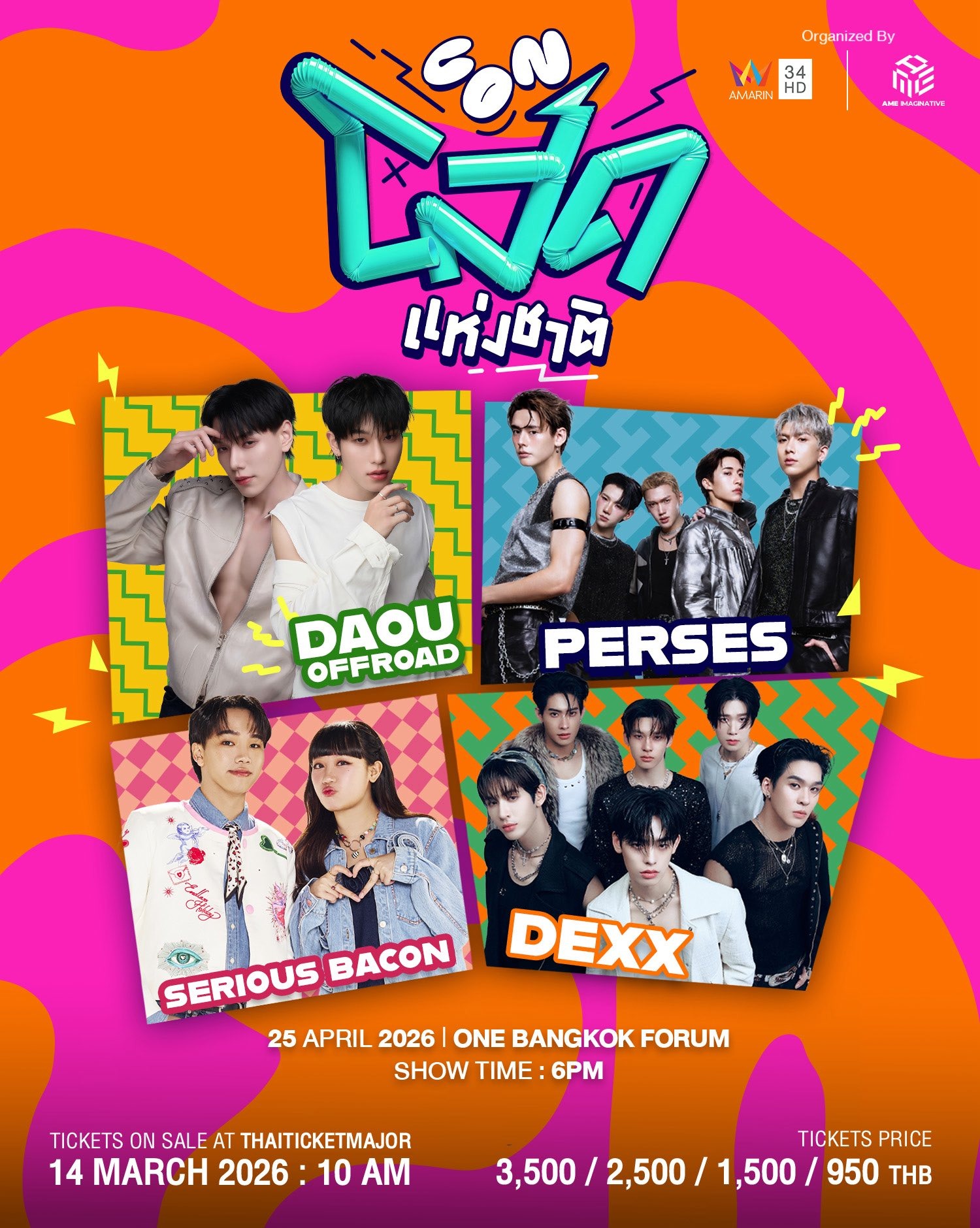 チケットは 3,500 / 2,500 / 1,500 / 950 バーツの 4 価格帯で、3 月 14 日午前 10 時よりThaiTicketMajor にて販売開始となります。