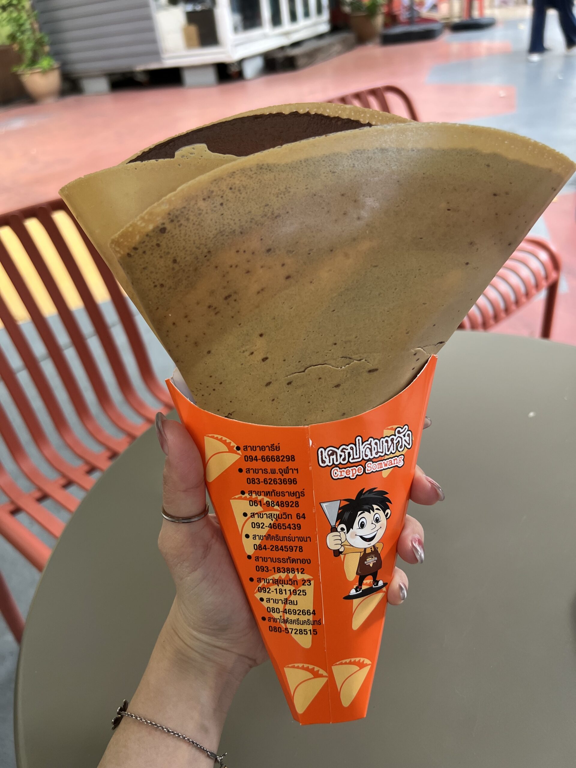 かつてタイでは、このようなパリパリ食感のクレープを「クレープイープン(日本風クレープ)」と呼んでいました。しかし、この名前の由来は実ははっきりしていません。日本のクレープをローカライズし、タイ人の好みに合わせて進化させた結果、この名前が広まったのではないかと言われています。