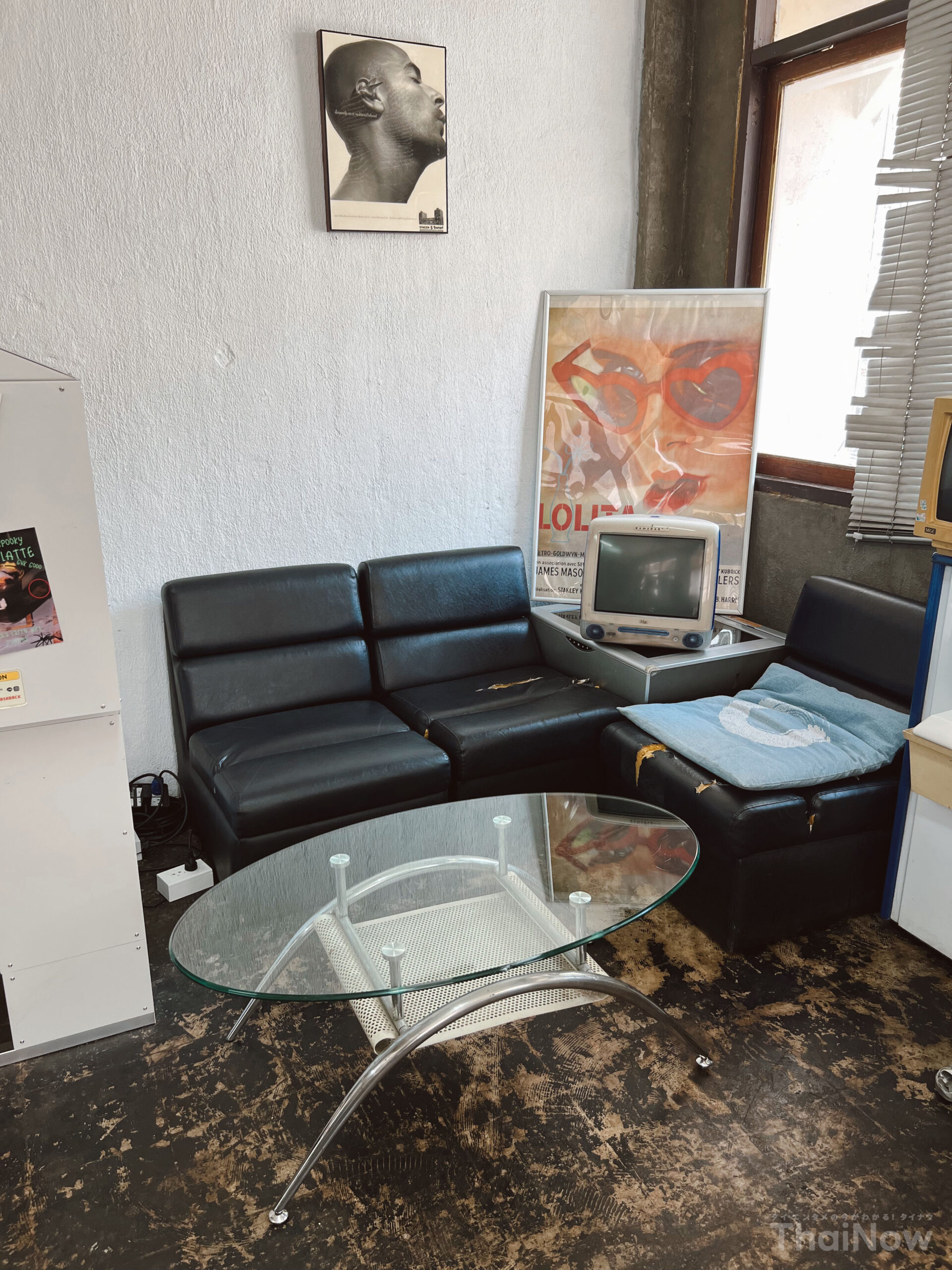 2階に上がると、まるで1980年代のオフィスビルの中に入り込んだような空間です。装飾も素晴らしいですが、特に印象的だったのは家具のチョイスです。古いスタイルの家具が置かれており、中でもプラスチックの椅子がとても良い雰囲気を出しています。