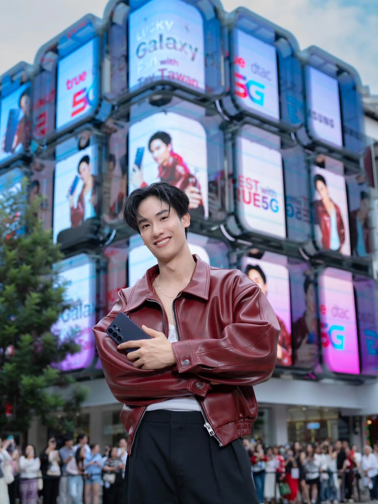 タイの大手通信キャリアTrue-dtacが主催したこのイベントは、AI機能を搭載した最新フラッグシップモデル「Galaxy S26 Series」の発売を記念したもの。会場となったサイアムエリアの「True Alpha Hub」周辺には、テイ・タワンを起用した巨大な屋外広告が多数掲出され、バンコクの街が彼一色の祝福ムードに包まれました。